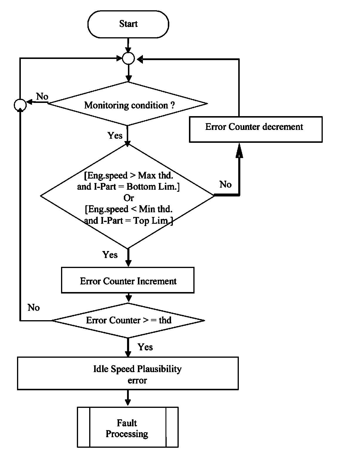 Flowchart: Idle speed control rationality diagnosis