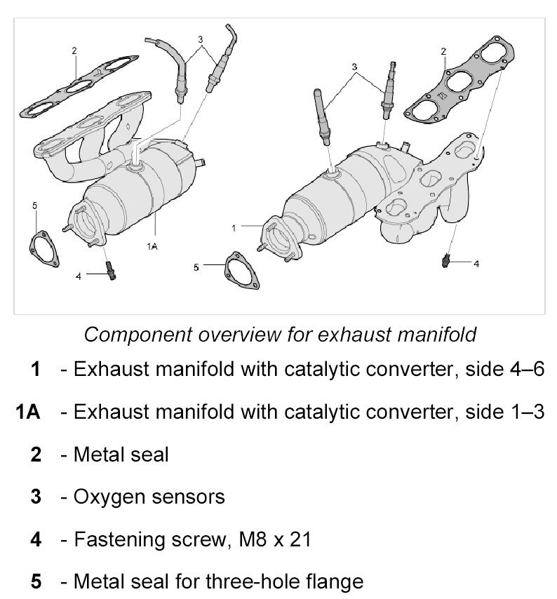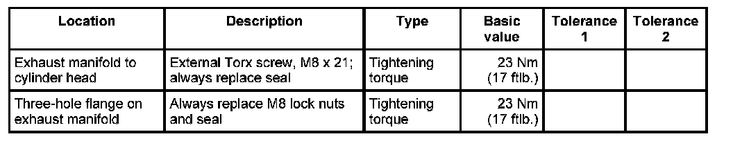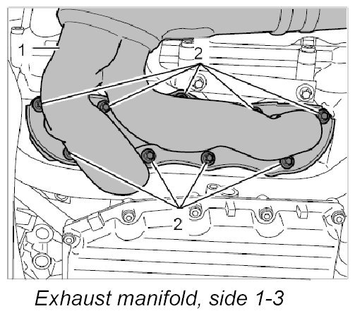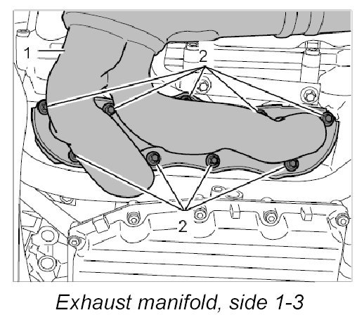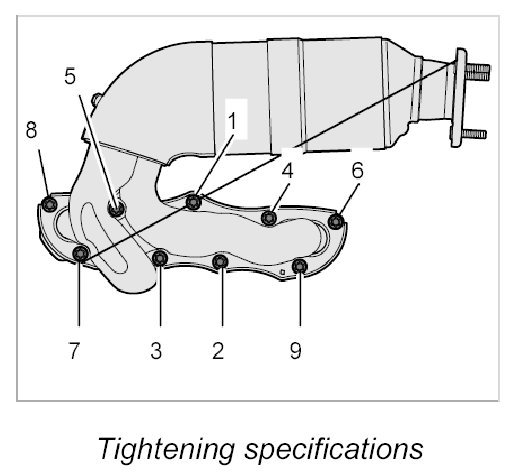 2. Fit exhaust manifold with new metal seal and nine screws on the cylinder head flange.