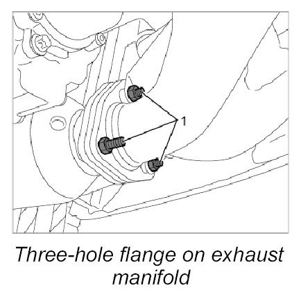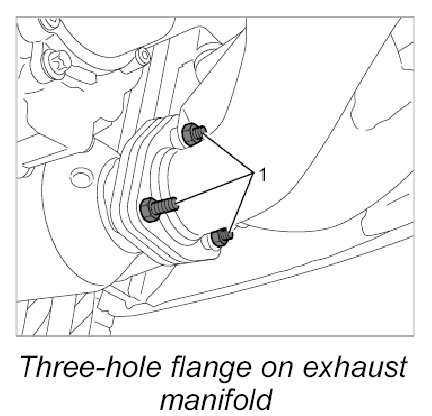 1. Fit exhaust manifold with new metal seal and new lock nuts -1- on the three-hole flange for the front silencer.