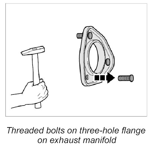 1. Tap out damaged threaded bolts on the exhaust manifold with a hammer.