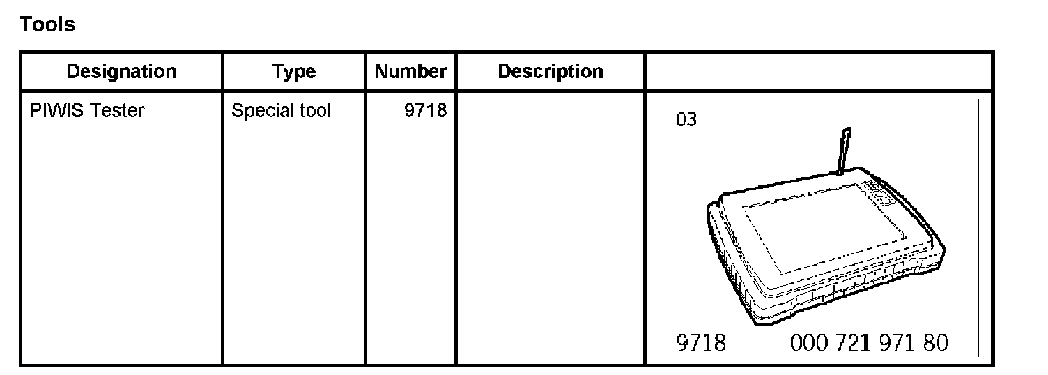 The procedure described here has been structured in general terms; different text or additions may appear in the PIWIS Tester 9718.