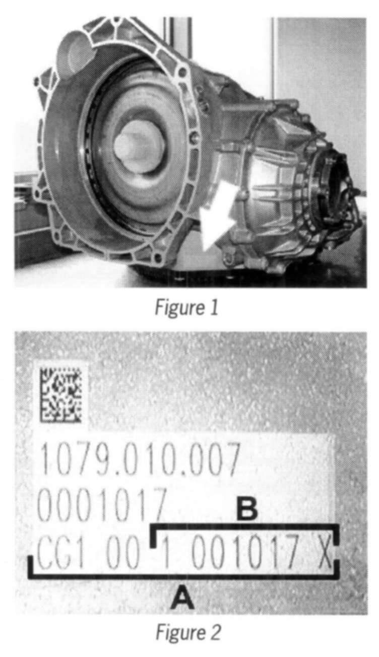 - Transmission number (--> Figure 1 -arrow-). Position the vehicle on a lifting platform in order to read off the transmission number. Remove the underbody panelling (right transmission area) and read off the 13-digit transmission number (--> Figure 2-A-).