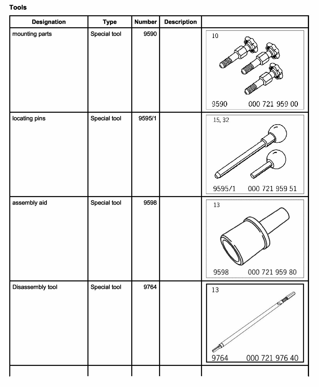 Overview of special tools