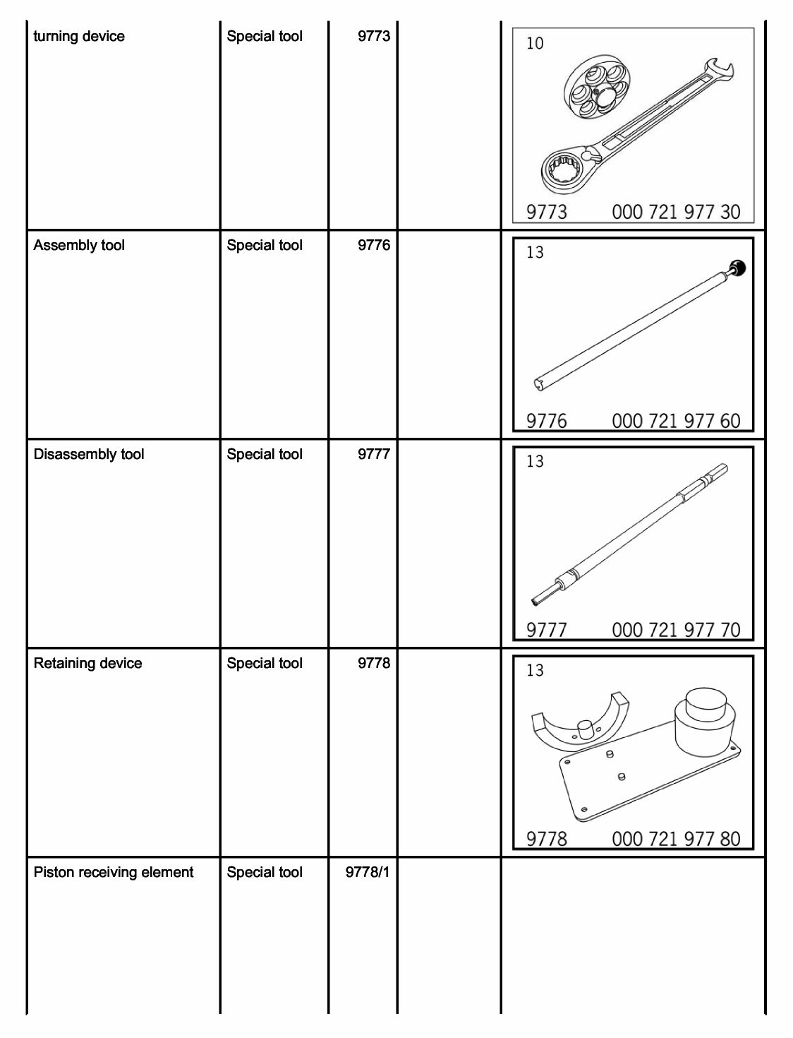 7- Disassembly tool 9777 and assembly tool for piston pins.