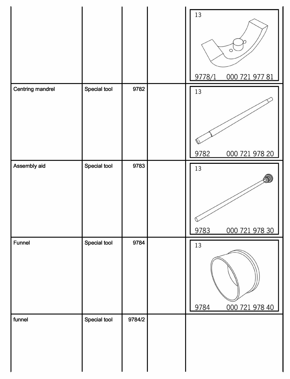3- Funnel 9784 or funnel 9784/2 for piston assembly, diameter: 97 mm or 102 mm.