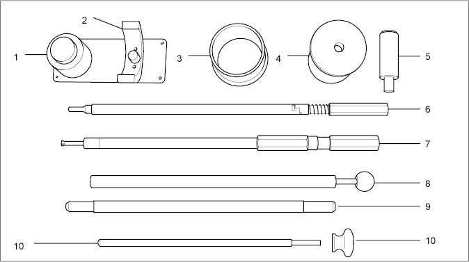 10- Assembly aid 9783 for pressing out pistons (cylinders 1-3) and connecting rods with pistons (cylinders 4-6).
