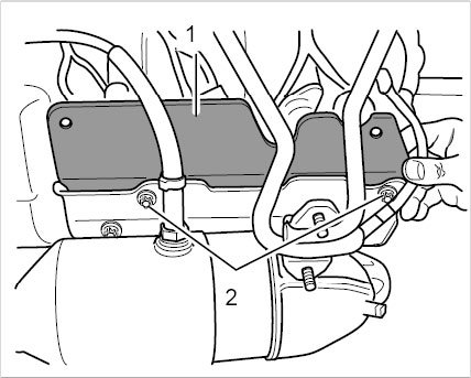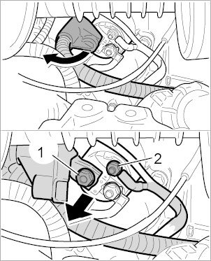 10.1. Unscrew two external Torx screws (E10, M6 x 12) -2- and remove the pipe.