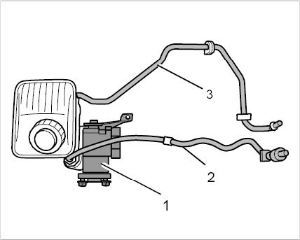 23. Remove hydraulic pump -1- together with the pressure line -2- and return line -3-.