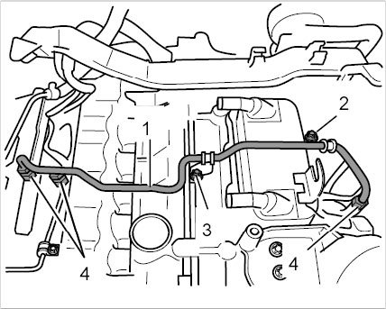 14.1. Unclip positive crankcase ventilation line -3- at the oil-fill pipe.
