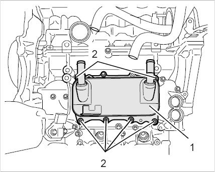22.2. Replace O-rings on the connection point to the bracket for the oil/water heat exchanger.