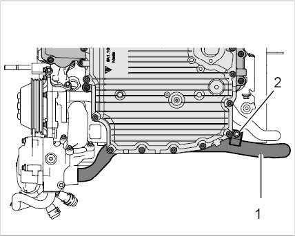10. Remove coolant pipe -1- for the coolant pump.