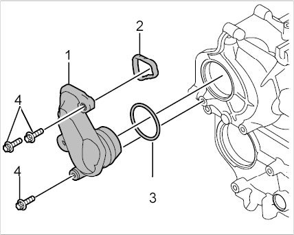 44.4. Pull off bracket for coolant pump -1-. Replace O-rings -2 + 3-. Check seal for damage and replace it if necessary.