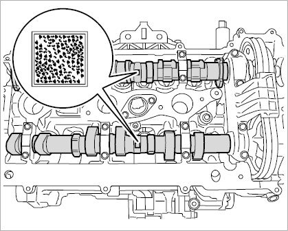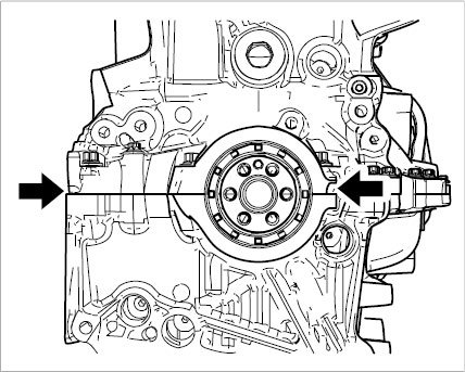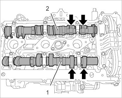 2.2. If the camshafts are at overlapping position, square markings can be seen on the outlet and intake camshaft (data matrix code).