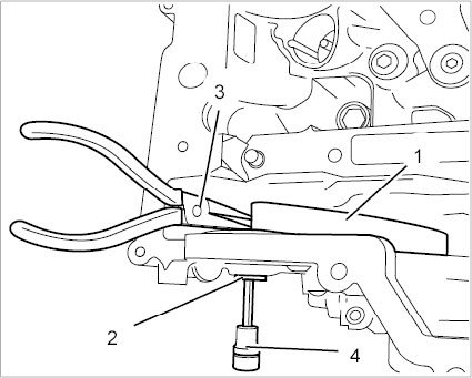 7. Pull out twelve displacement bodies -1- on cylinder bank 1-3 using a pair of flat-nosed pliers.