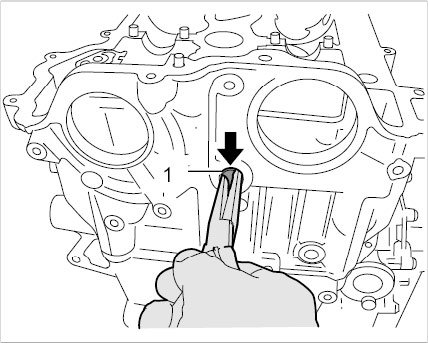 ^ Guide the timing chains with your hand when turning the crankshaft so that they do not get stuck in the crankcase.