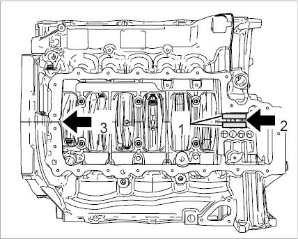 46.2. Cover on cylinder bank 4-6 -1-: Unscrew two external Torx screws (M6 x 20) -3- and replace O-ring -2-.