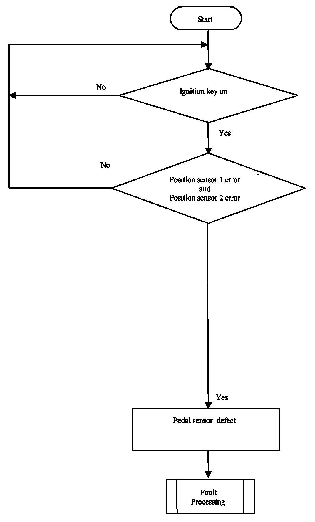 The aim is to detect a multiple pedal value sensor fault. In case of multiple pedal value sensor fault the engine management state is set to idle state. Only creeping is possible.
