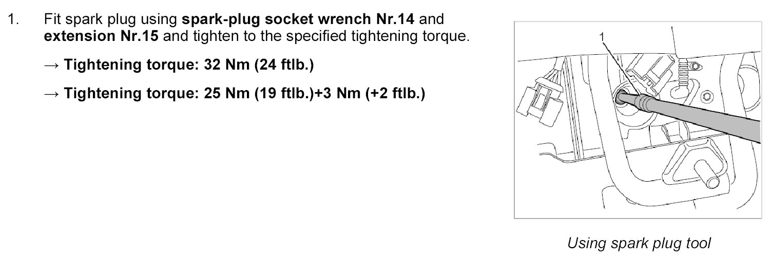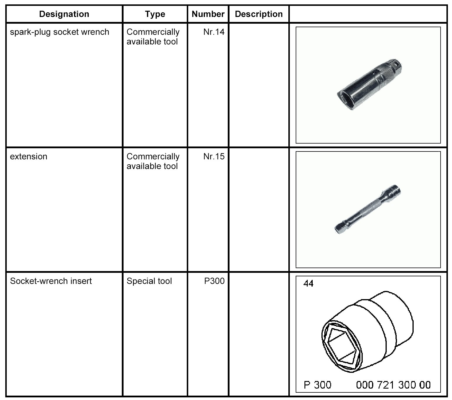 1. Remove spark plugs using spark-plug socket wrench Nr.14 and extension Nr.15 -1-.