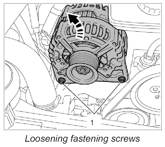 2. Unscrew the two fastening screws -1- and lift the generator up and out.