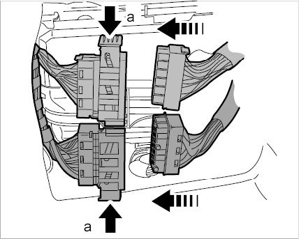 1. Unlock and disconnect electric plug connections on the main wire harness -a-.