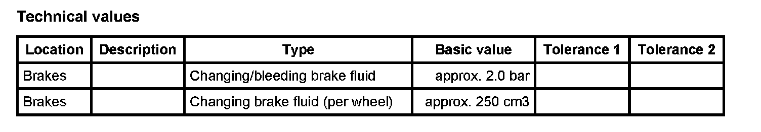5. Open every bleeder valve until clear, bubble-free brake fluid emerges and until the corresponding change quantity per brake calliper is reached. Per brake calliper (per wheel): approx. 250 cm3.