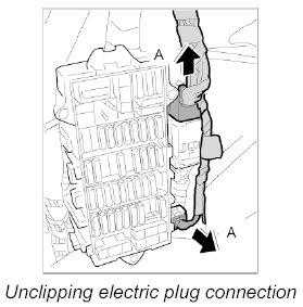 1. Unclip electric plug connection at the fuse box and move it aside.