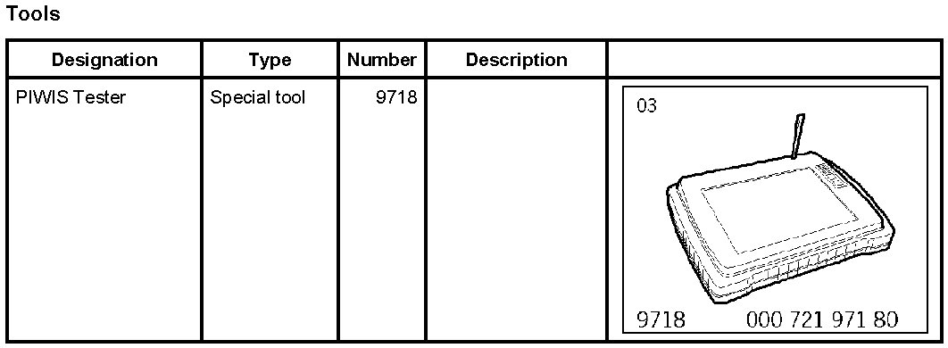 - The PIWIS Tester 9718 instructions take precedence since the description may be different. This may be due to more recent software versions.