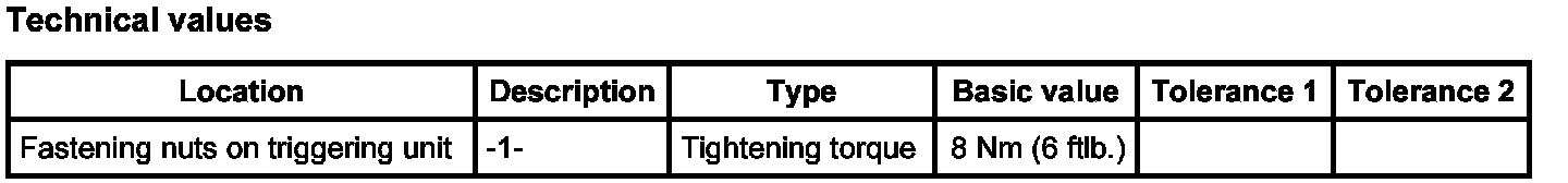 1. Position triggering unit, move both ground straps -2- on the left fastening bolts and screw down with the three fastening nuts -1-. Tightening torque: 8 Nm (6 ftlb.)