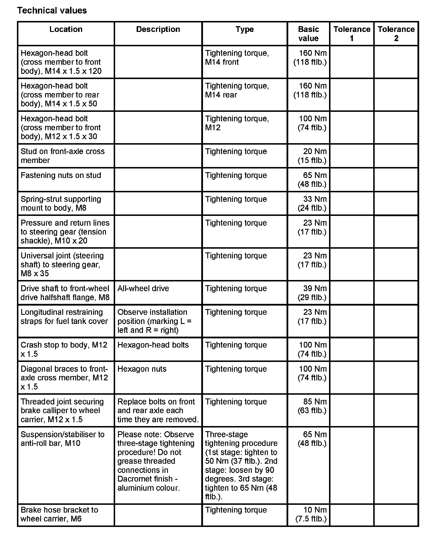 - Tightening torque, M14 front: 160 Nm (118 ftlb.)