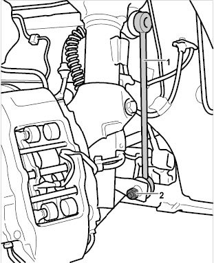 Loosen the nut -2- and remove connecting link -1- from the anti-roll bar.