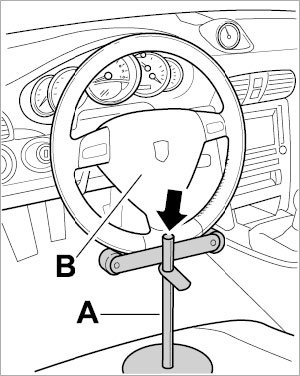 Secure the steering wheel in center position using the steering-wheel holder -A-.