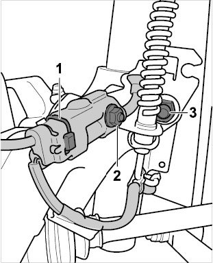 1.3. Disconnect electric cable plug -1- for the wheel speed sensor and brake pad wear indicator.