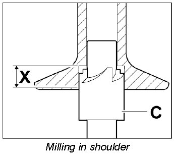 Mill out bore hole up to dimension X using spot facer C. See Table. Milling in may only be performed using the tool contained in the Porsche special tools. Use an electronically controlled power drill set to a speed of approx. 250 rpm (1/min) for milling in.