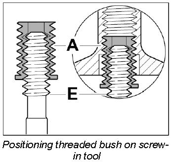 Screw threaded bush A in fully (note bush length classification) using the screw-in tool E.