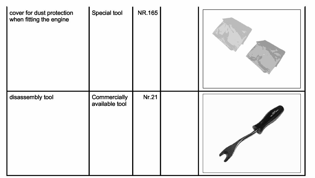 -> Use the cover for dust protection when fitting the engine NR.165 on the engine assembly support.