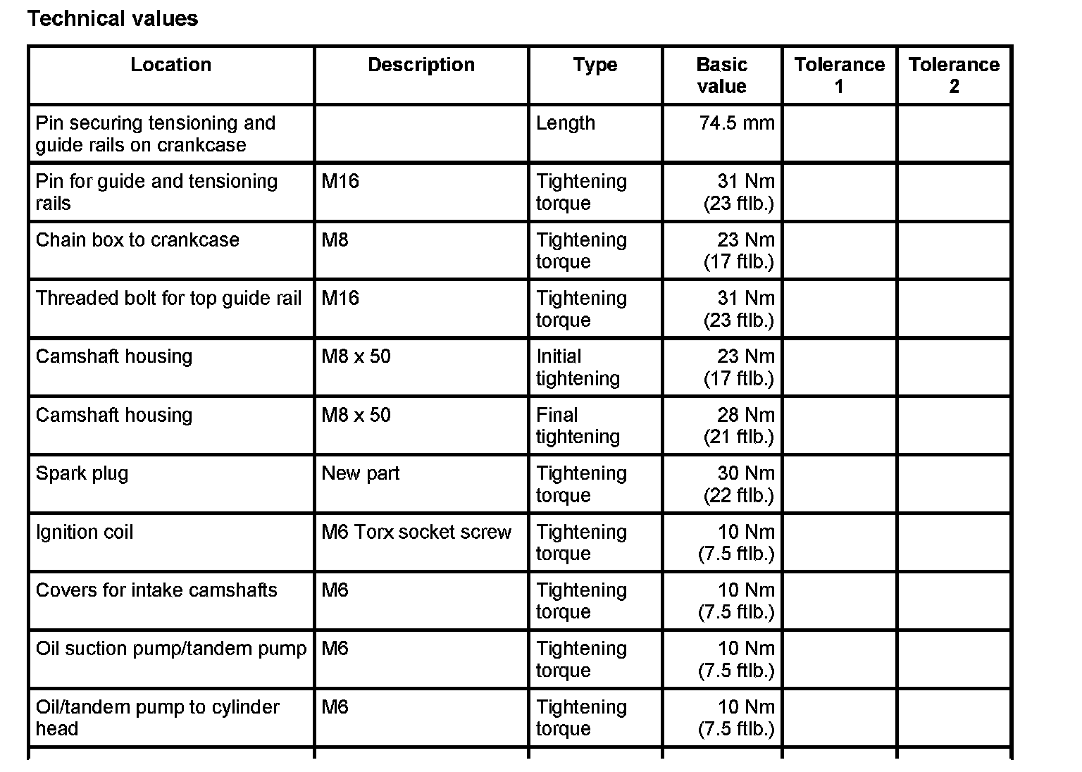 58.3. Tensioning rail: unscrew one threaded bolt with a length of 74.5 mm (crankcase) and dispose of sealing ring.