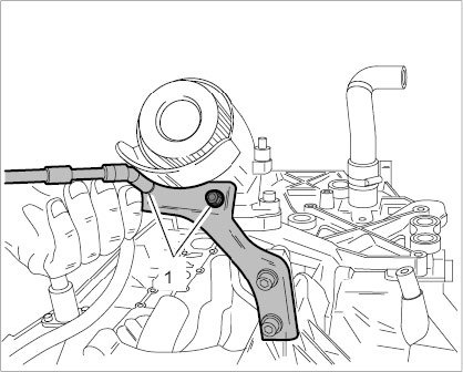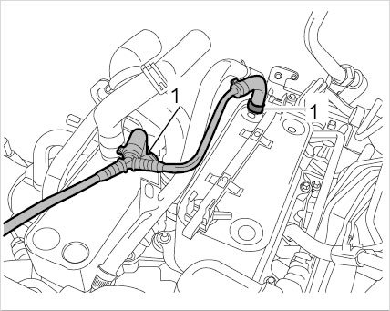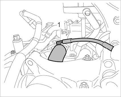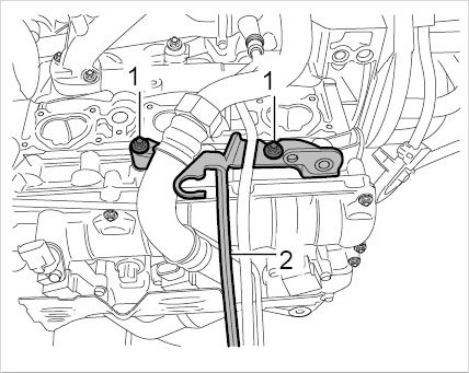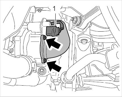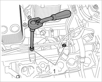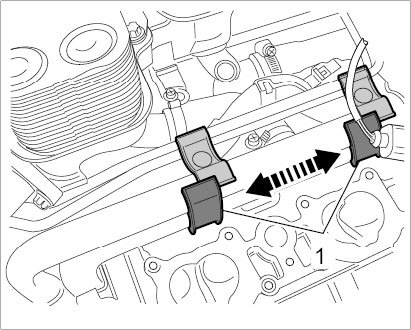 22.2. Open the clamp -1- and remove lines for the turbochargers.