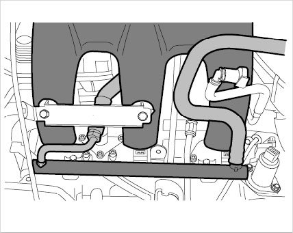 24. Remove the oil return line from the engine to the oil/water heat exchanger.