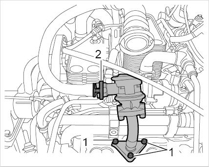 51.2. Unscrew M6 fastening screw -1- on the cylinder head and remove holder -2-.