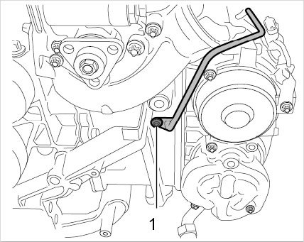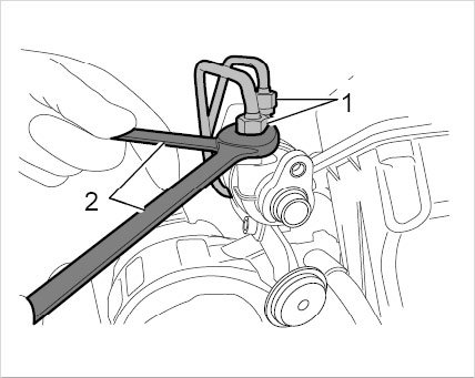24.2. Loosen the union nut (a/f 32) on the lower side of the crankcase and remove the line -2-.