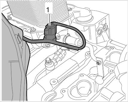 14. Loosen ground cable on cover for camshaft housing 1-3 and 4-6. Unscrew one Torx(R) screw (M6 x 35) on each.