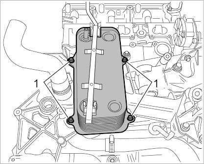 41. Loosen holder for oil filter console by removing two Torx(R) screws (M6 x 16) -1-.