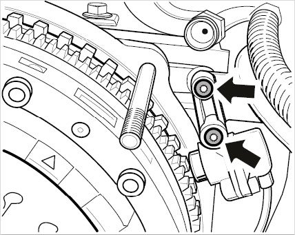 3. Secure the engine support to the engine/transmission flange with screw sleeves.