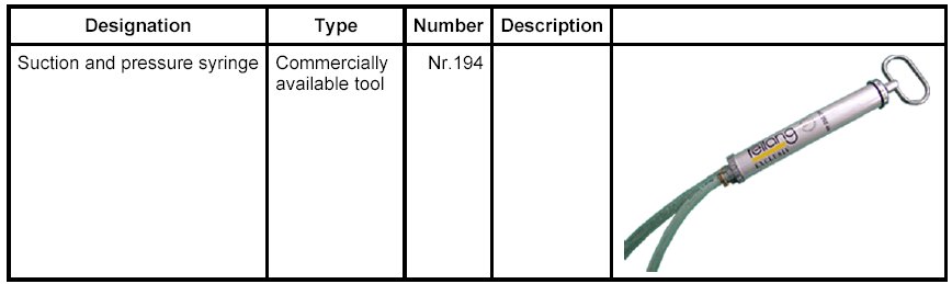 Air-conditioning service unit, refer to Special Tools, Commercially Available Tools, Chapter 2.4, No. 96-2)