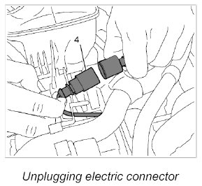 3. Remove and unplug electric connector -4- from the top bracket on the compressor.