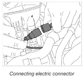 6. Plug in electric connector until the connector engages securely and slides onto the top bracket on the compressor.