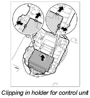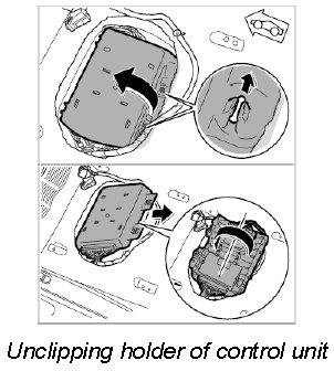 3. Press the four retaining clips carefully back and take the control unit out of the holder.