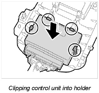 1. Insert control unit into holder making sure the clips engage.