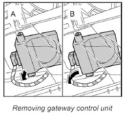 4. A- Pull (unclip) the gateway control unit out of the cover at the connector side.
