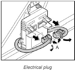3. Release and unplug both electric connectors -A- and disengage the left and right electric lines on the control unit.